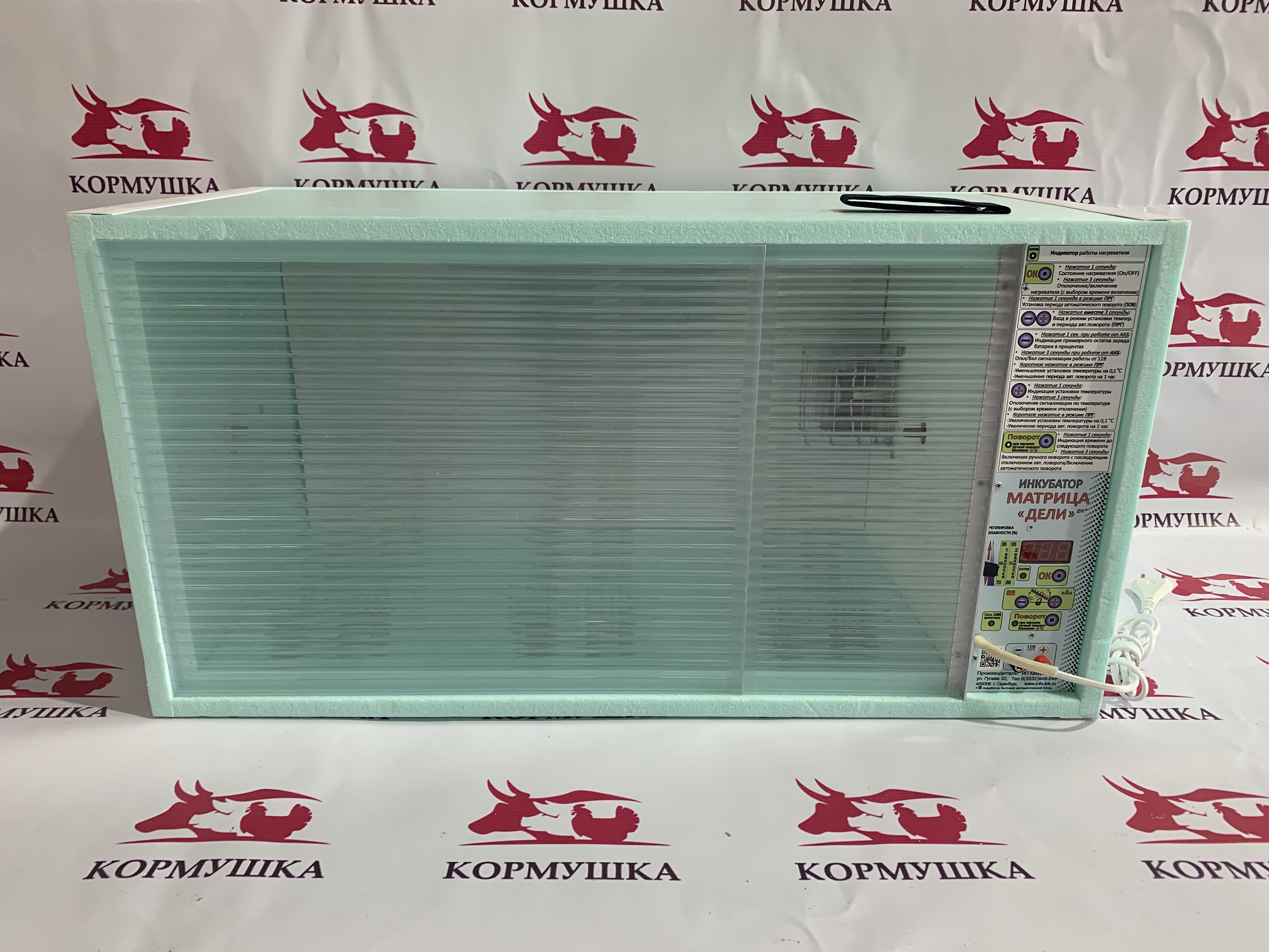 Питание от сети и от аккумулятора. Инкубатор сам подзаряжает аккумулятор.