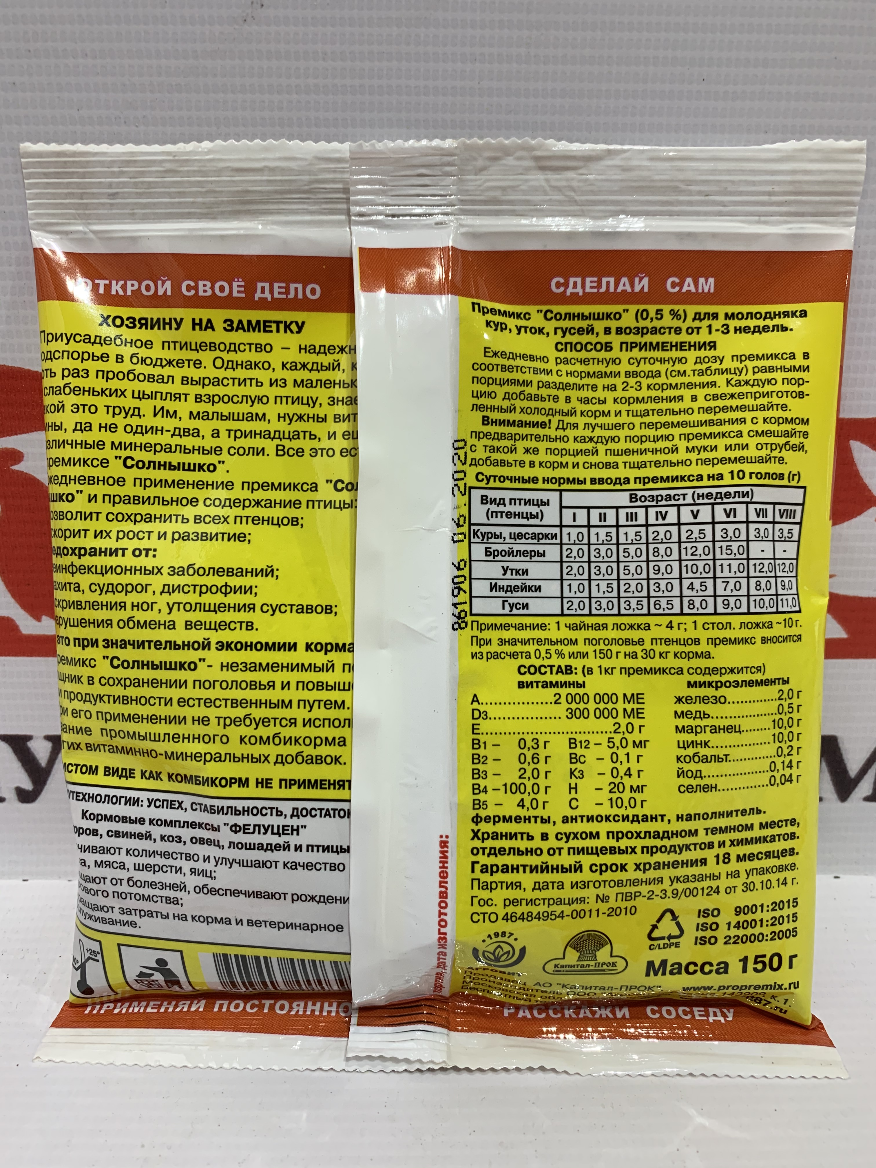 Премикс Солнышко для молодняка кур, уток, гусей в возрасте от 1-3 недель (0,5%) (150г)