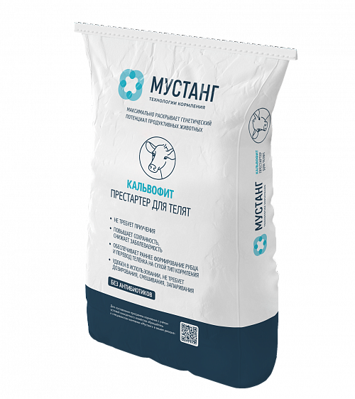 КАЛЬВОФИТ™ УЛЬТРА - престартер для телят, раннее применение которого способствует быстрому развитию рубца и переходу на сухие корма, повышению сохранности, снижению заболеваемости. В продукте высокопитательный состав: 11 мДж энергии и 23% сырого протеина. Уникальная формула включает фитобиотики, которые подавляют патогены и улучшают пищеварение, а также витаминно-минеральный комплекс для гармоничного развития.