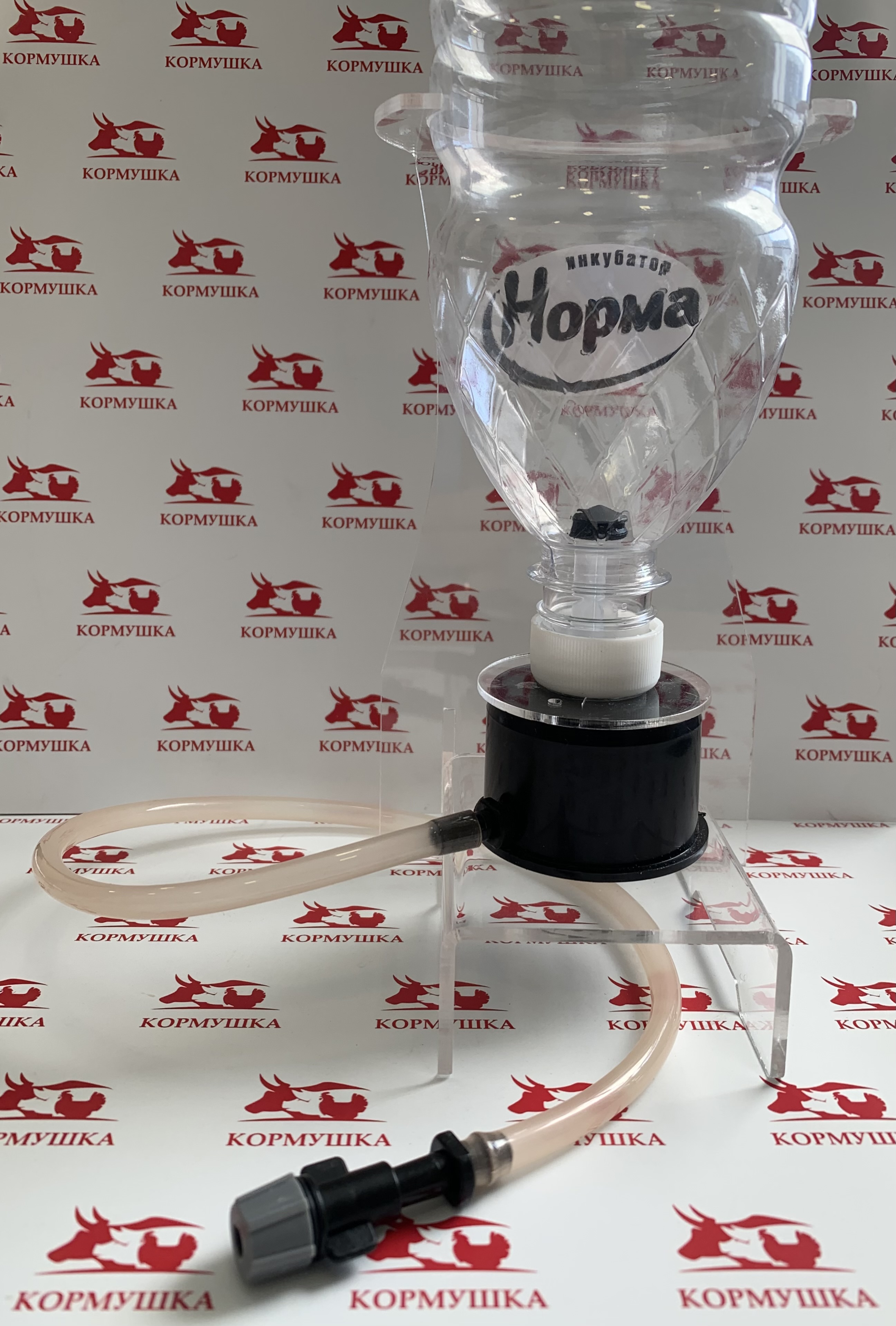 Поставив эту систему в инкубатор, Вы почти автоматизируете добавление воды в ванночки. Снаружи будет видно сколько осталось воды и пополнять запасы тоже можно, не открывая инкубатора. В среднем одной заправки (полная ванночка и бутылка 1 л) хватает на 5 дней. В комплекте все соединители и переходники. Вам остается просверлить 2 отверстия и подсоединить питающий стакан к ванночке.
