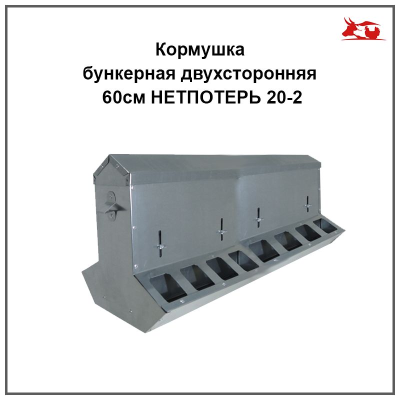 КОРМУШКА БУНКЕРНАЯ ДВУХСТОРОННЯЯ "НЕТПОТЕРЬ 20-2" ФРОНТ КОРМЛЕНИЯ НА 16 ГОЛОВ