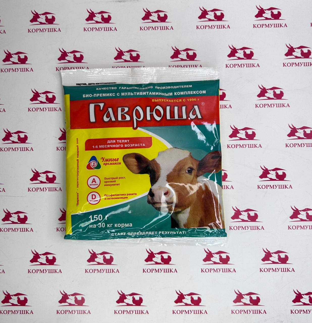 Витаминно-минеральная кормовая добавка в виде премикса для производства комбикормов и кормосмесей для телят 1-6 месячного возраста. Скармливание премикса Гаврюша телятам 1-6 месячного возраста способствует предупреждению заболеваний, вызванных дефицитом минеральных веществ и витаминов, повышению устойчивости организма к болезням, способствует повышению продуктивности, сохранности животных и эффективности использования корма, улучшению пищевой и технологической ценности мяса. Способствует:Микроэлементы: железо, марганец, медь, цинк, кобальт, йод, селен.